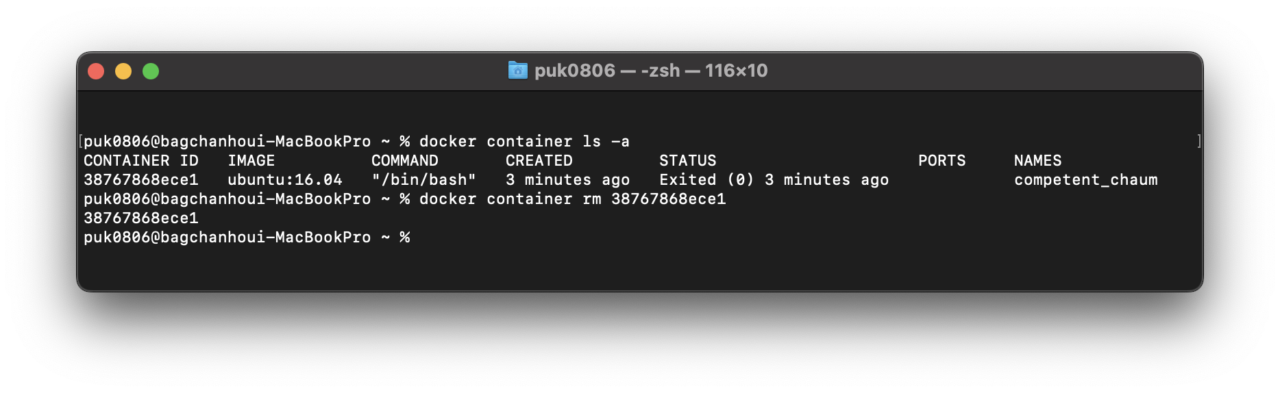 docker container rm 38767868ece1