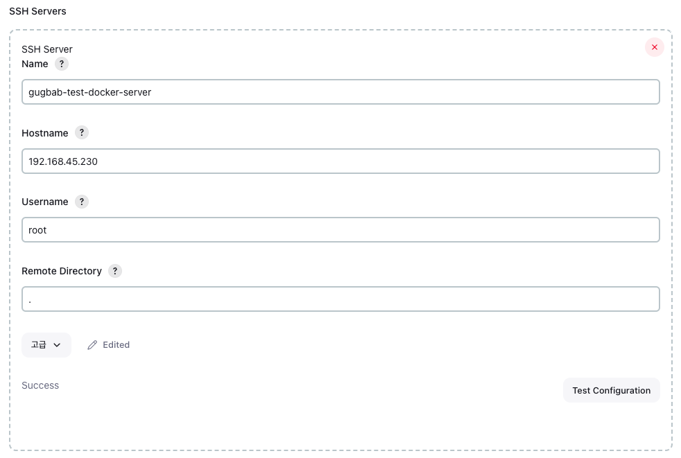 - Jenkins 관리 -> System -> Publish over SSH -> SSH Servers 추가