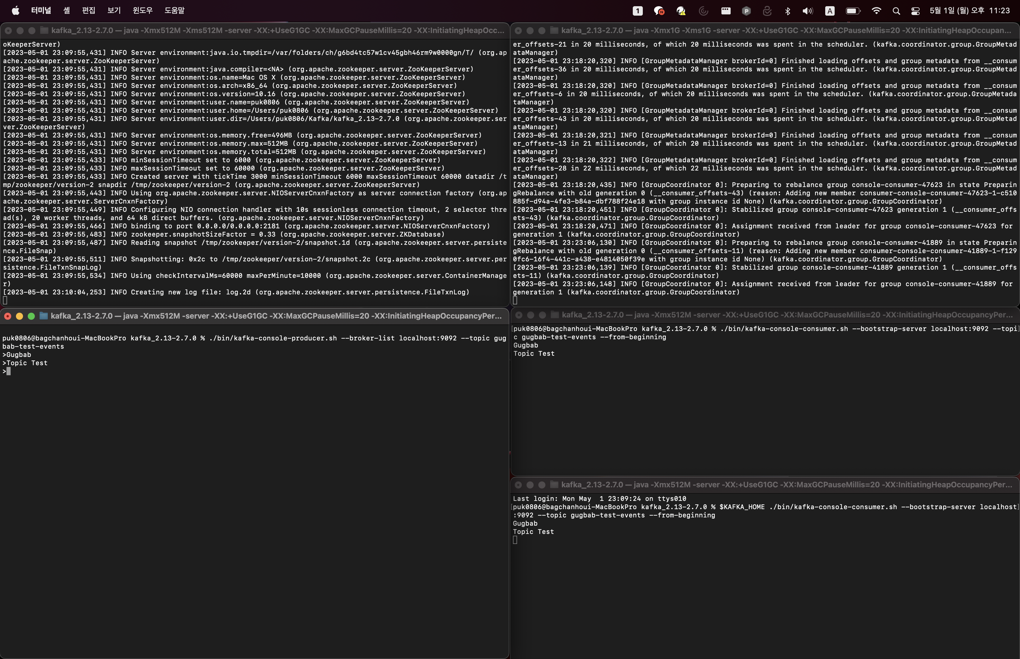 Kafka 다운로드 https://kafka.apache.org/downloads Apache Kafka Apache Kafka: A Distributed Streaming Platform. kafka.apache.org Zookeepr, Kafka 서버 구동 ./bin/zookeeper-server-start.sh ./config/zookeeper.properties ./bin/kafka-server-start.sh ./config/server.properties $KAFKA_HOME ./bin/zookeeper-server-start.sh ./config/zookeeper.properties $KAFKA_HOME ./bin/kafka-server-start.sh ./config/server.prope..